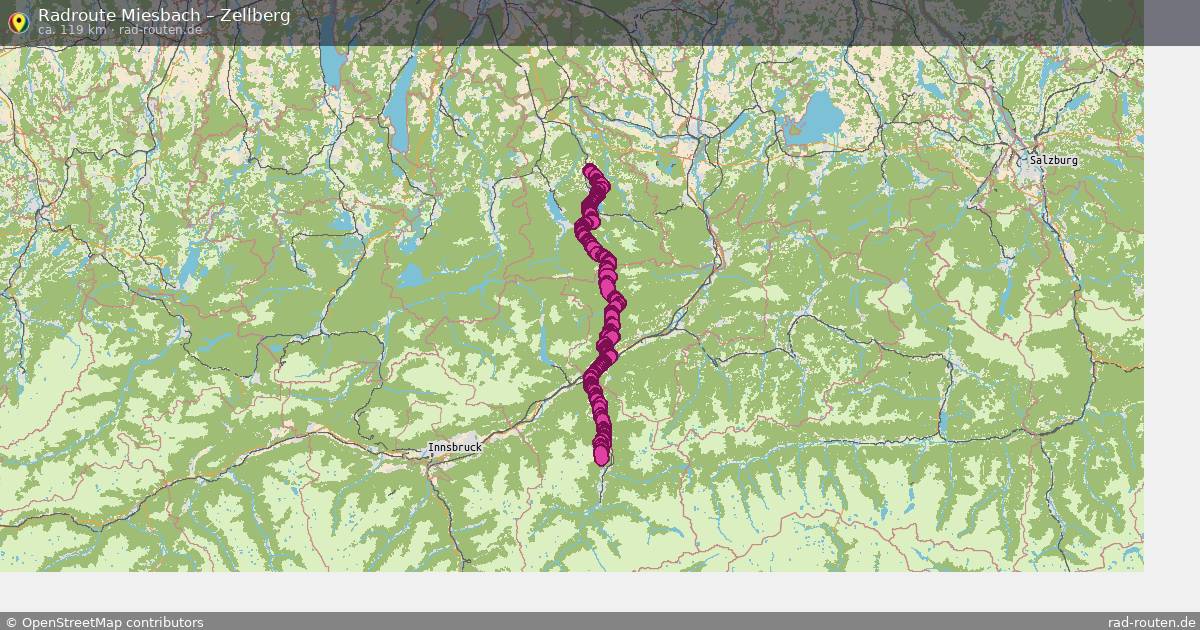 Die Fahrradroute von Miesbach nach Zellberg ist ca. 119 km lang und führt über Achenkirch, Brandenberg, Eben am Achensee und Wiesing. Wichtige Straßen auf der Strecke: Zellberg, Alte Seeuferstraße, Seestraße, Obere Dorfstraße und Westerbergstraße.