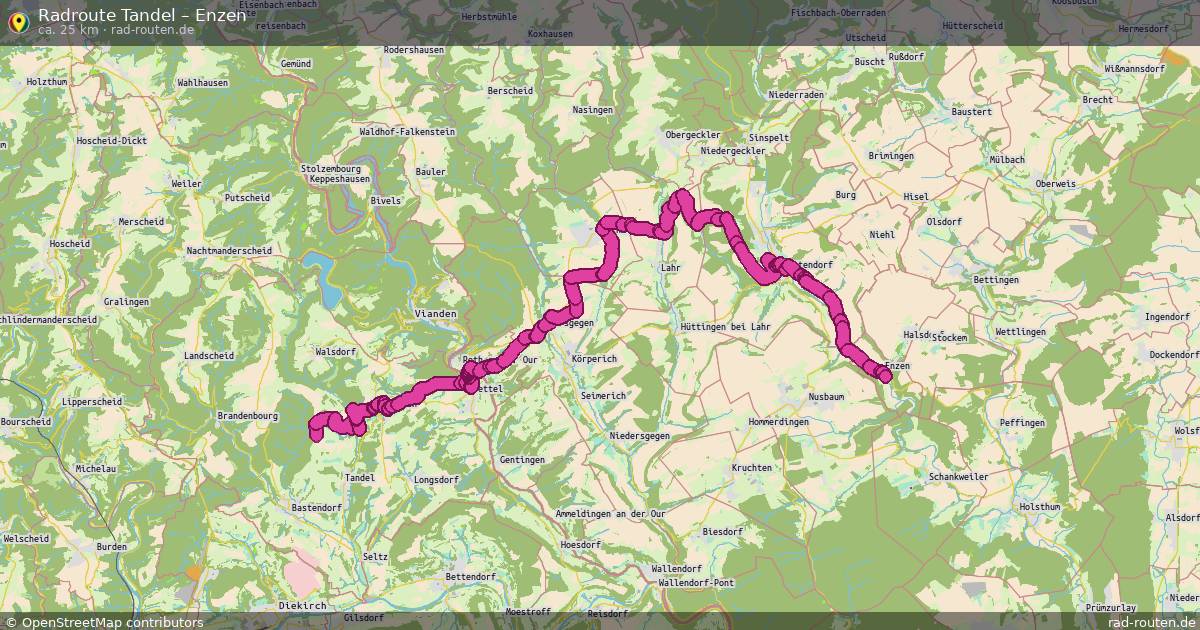 Die Fahrradroute von Tandel nach Enzen ist ca. 25 km lang und führt über Südeifel.